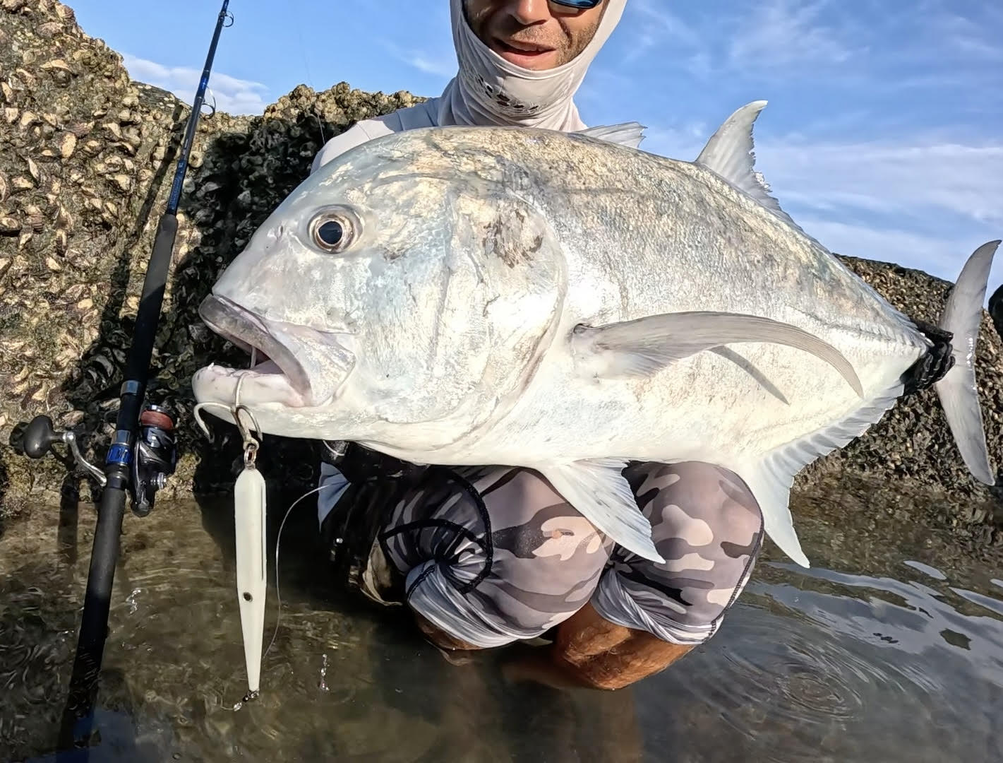 The 195mm long body is made from solid 100% recycled HDPE plastic which means you can drag it up the rocks all day. To give you piece of mind the 2mm 316 stainless steel thru-plate means you will stay connected to your fish of a lifetime no matter what.